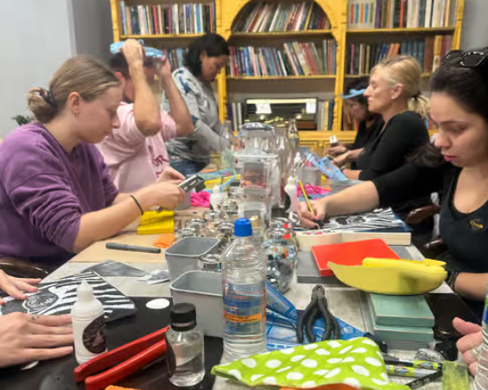 Δημιουργικά εργαστήρια για εταιρείες, ομάδες και συλλόγους, σχεδιασμένα ώστε να ενισχύουν τη συνεργασία και τη δημιουργική έκφραση. Πραγματοποιούνται στο στούντιο ή στον χώρο σας και προσαρμόζονται στις ανάγκες της ομάδας σας.