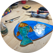 Βιωματικά δημιουργικά εργαστήρια ψηφιδωτού με γυαλί και βιτρό με τη μέθοδο Tiffany. Σχεδιασμένα για όλους, ορισμένα συνδυάζονται με σύντομη περιήγηση και ολοκληρώνονται στο στούντιο με το δημιουργικό μέρος του εργαστηρίου.